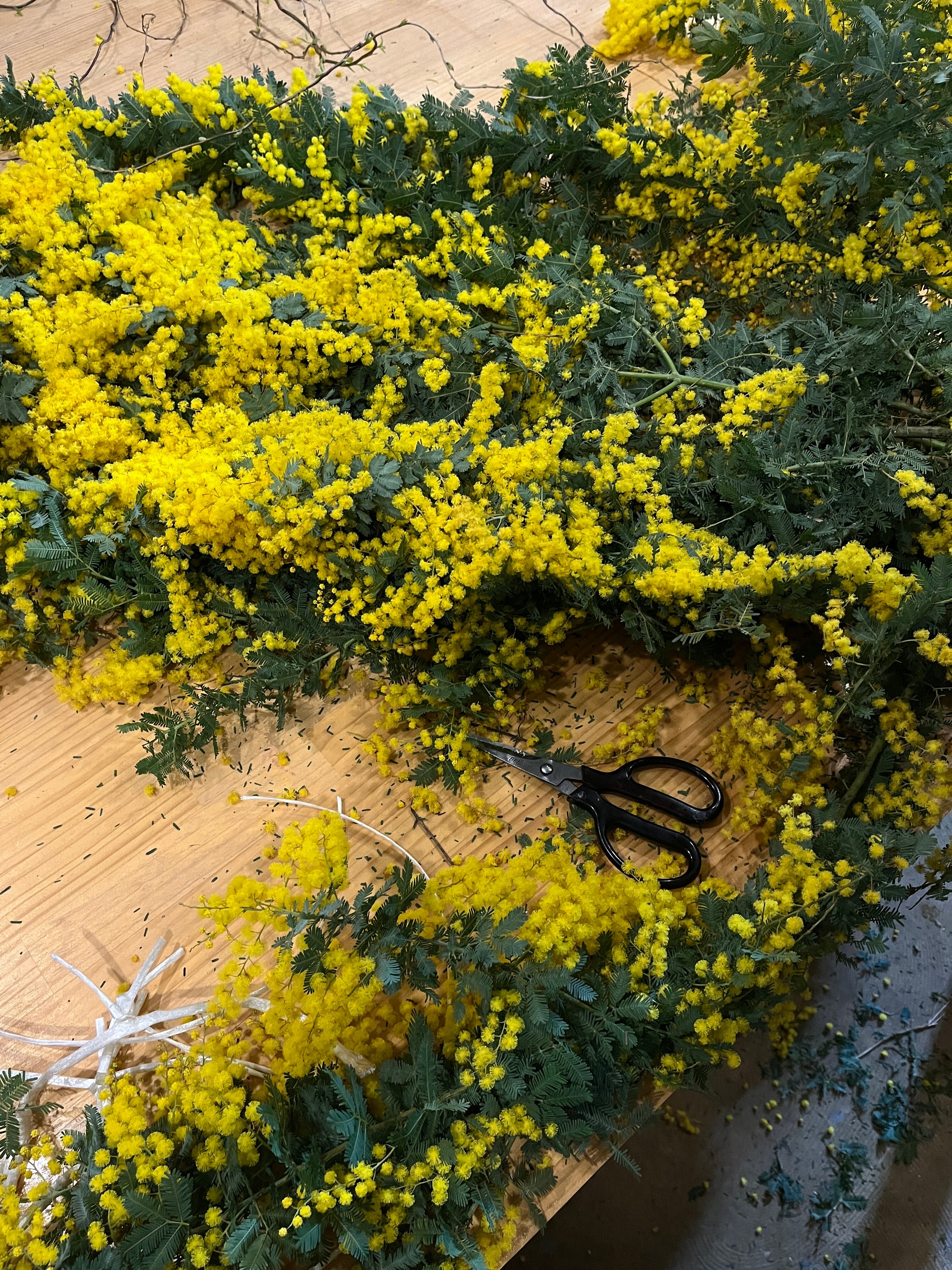 ふわふわのミモザと春の草花を束ねてみましょう