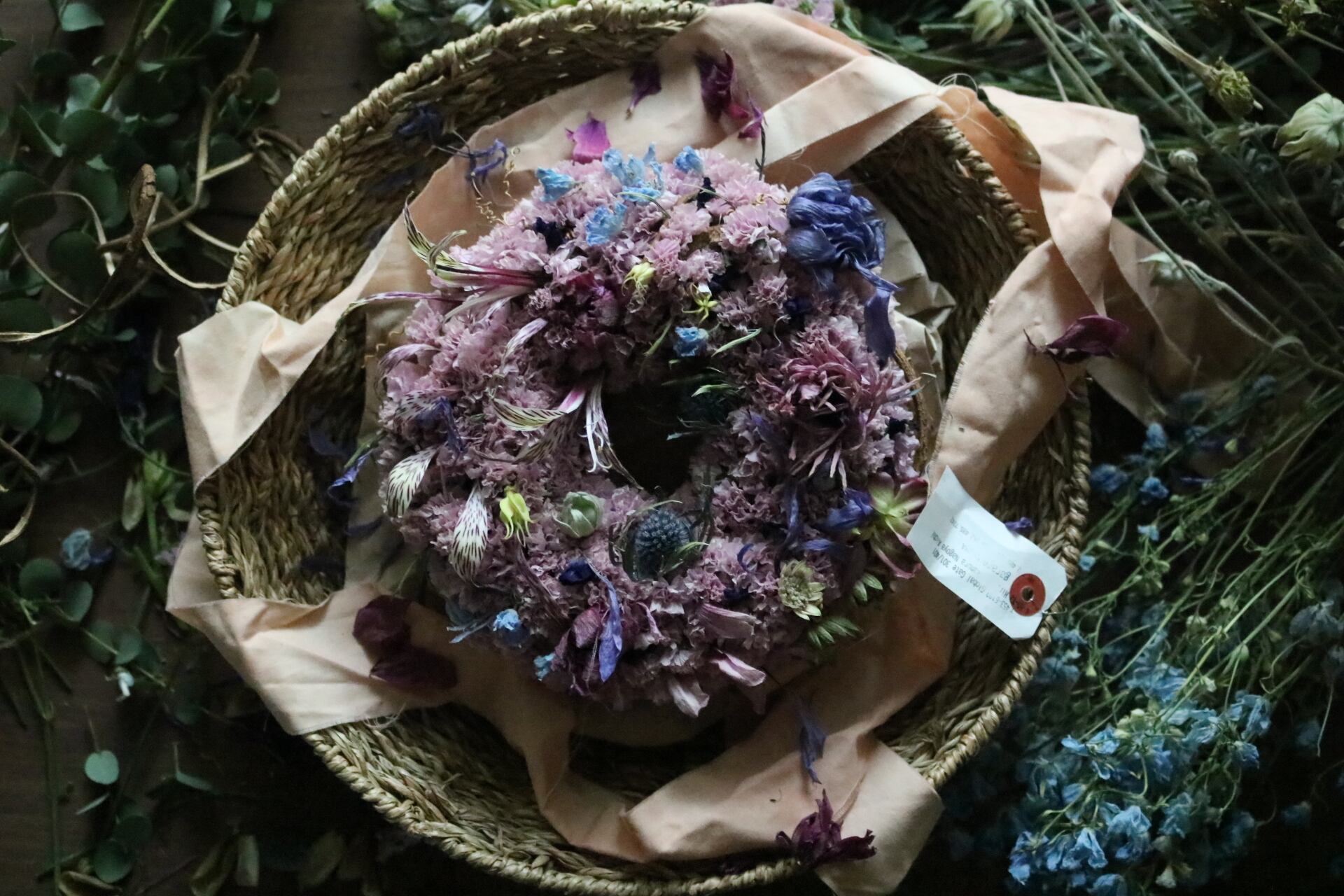 ノウルの特徴でもある、草花のもつ動きや流れ、色の混ざりを無理なく組み合わせて作りあげる花束やアレンジメントを中心に、花器への投げ入れやリースやスワッグを予定しています。